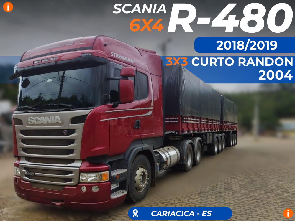 SCANIA R-480 A 6X4 VERM. 2018/2019 + BITREM 3X3 CURTO 2004/2004 VERM.