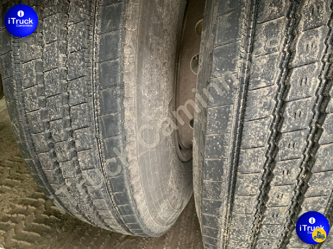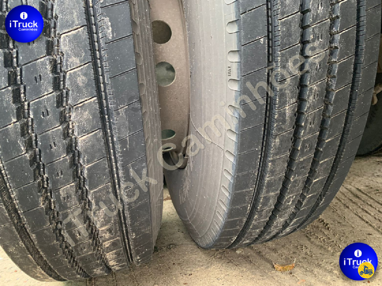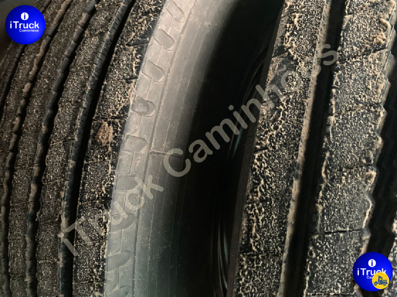 São 12 pneus primeira vida (90% de borracha) + dois estepes meia vida