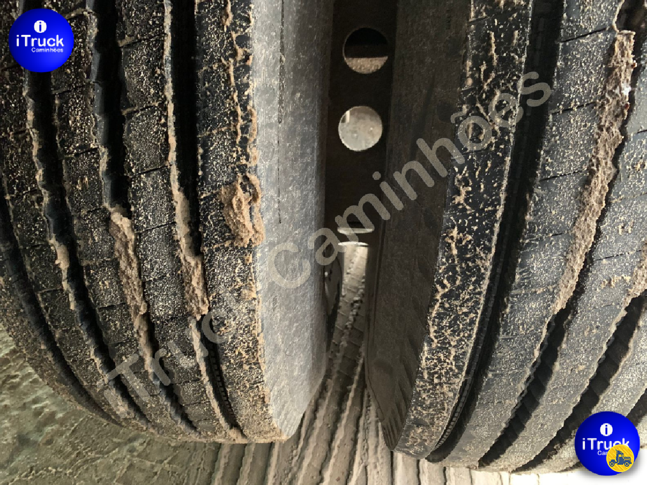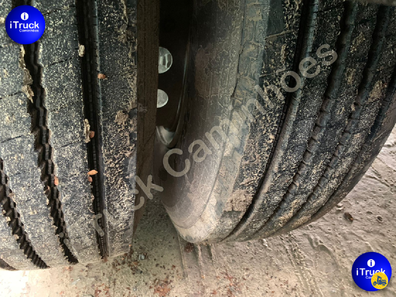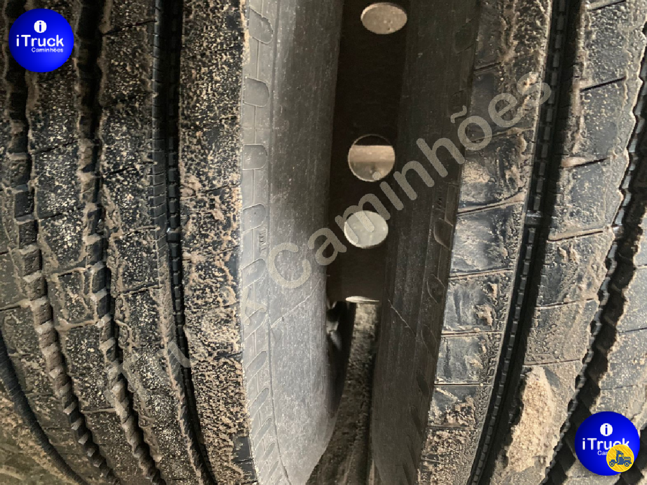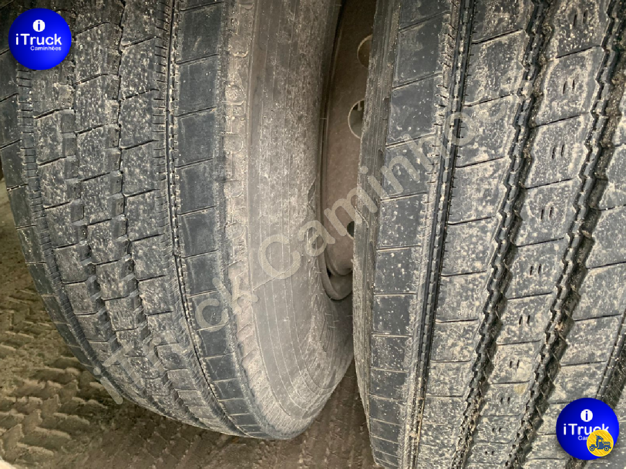 São 12 pneus primeira vida (90% de borracha) + dois estepes meia vida