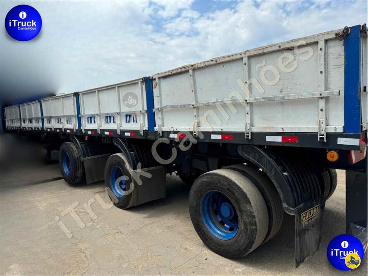 Carreta Bobineira Guerra Vanderléia 3 eixos; Assoalho de chapa de ferro; Rodas a disco; Comprimento de 12,50 metros; Tampas de 0,80 m.; Preço sem pneus.