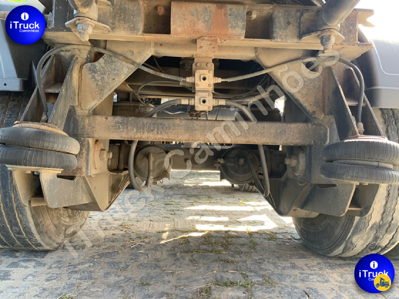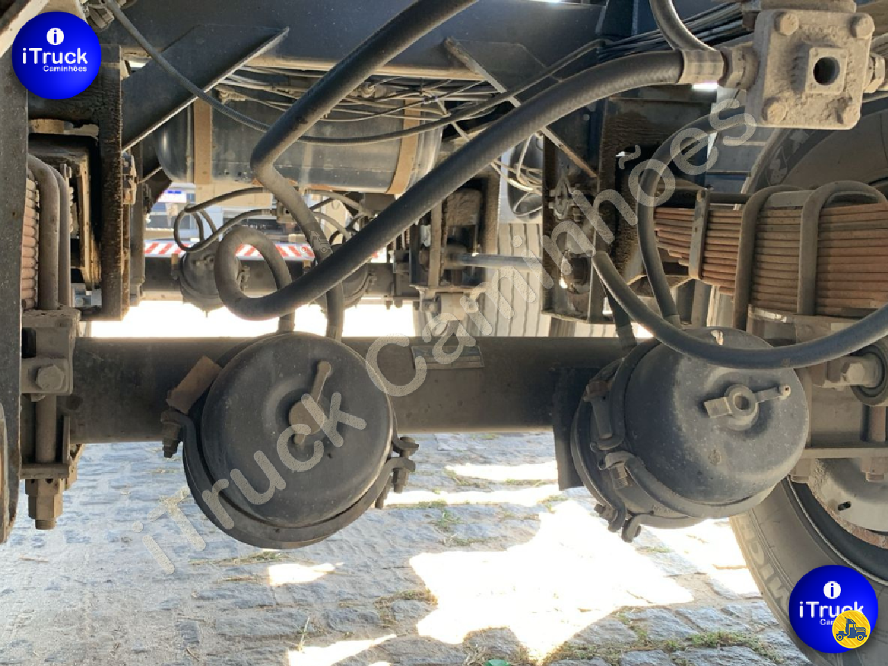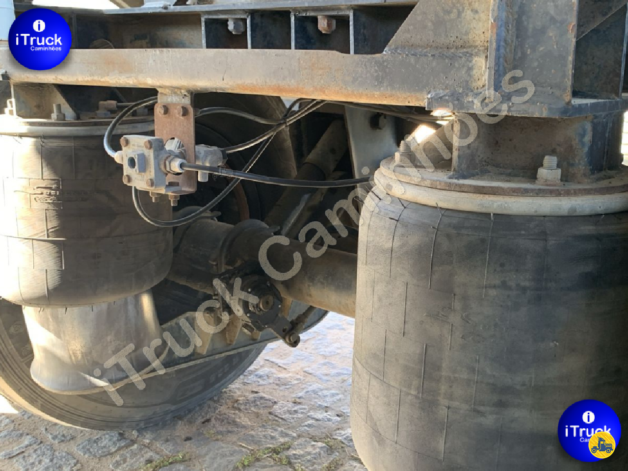 Primeiro eixo direcional com rala suspensão pneumática e suspensor;