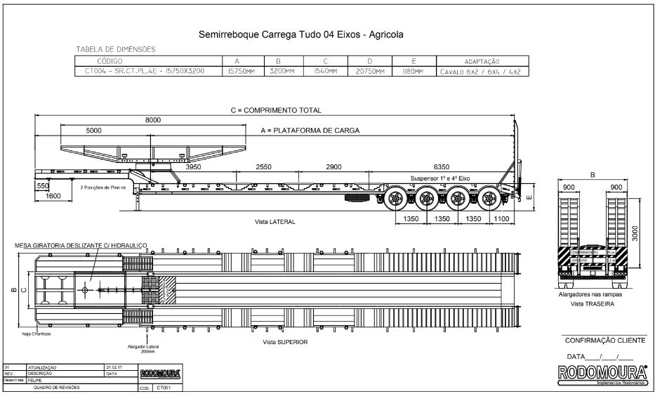 PRANCHA AGRÍCOLA 4 EIXOS 2019/2020 RODOMOURA 25 M.